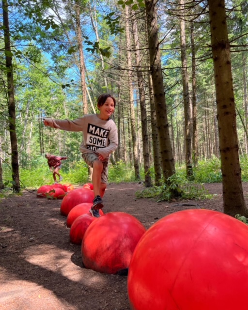 Ni hittar massor av olika lekstationer – både i skogen och på åkern. Här finns hinderbanor, labyrinter och annat skoj att upptäcka! Varje säsong har vi dessutom ett nytt uppdrag som man kan utföra längs banan, och innan man går hem får man ett diplom.